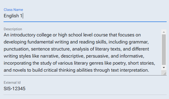 Select a class from the class drop-down or create a new class.