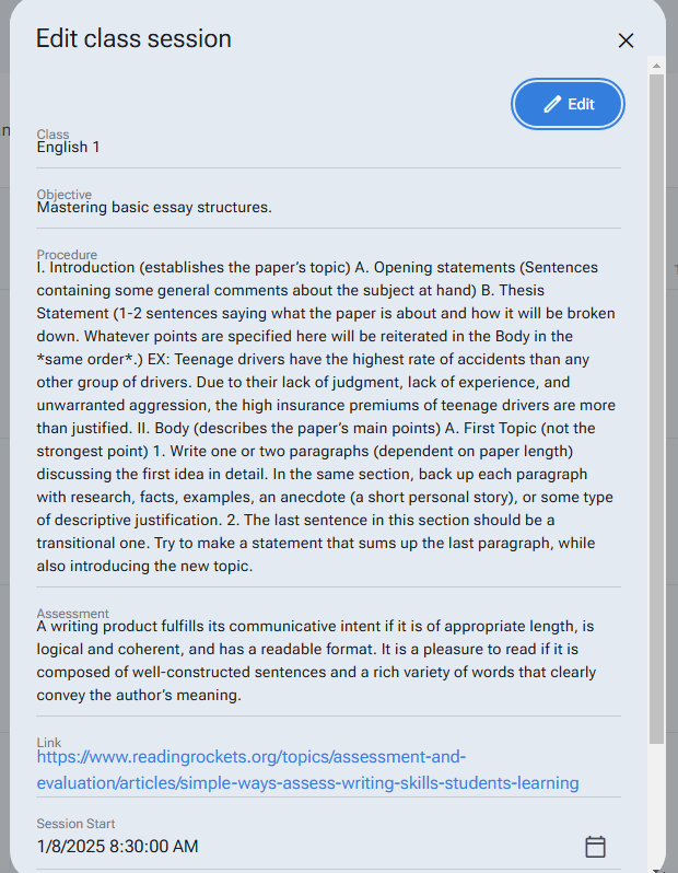 Review and edit the session by clicking on the event in the calendar.