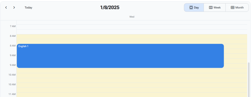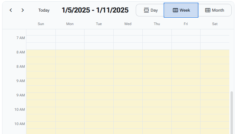 Switch between Month, Week, and Day views.