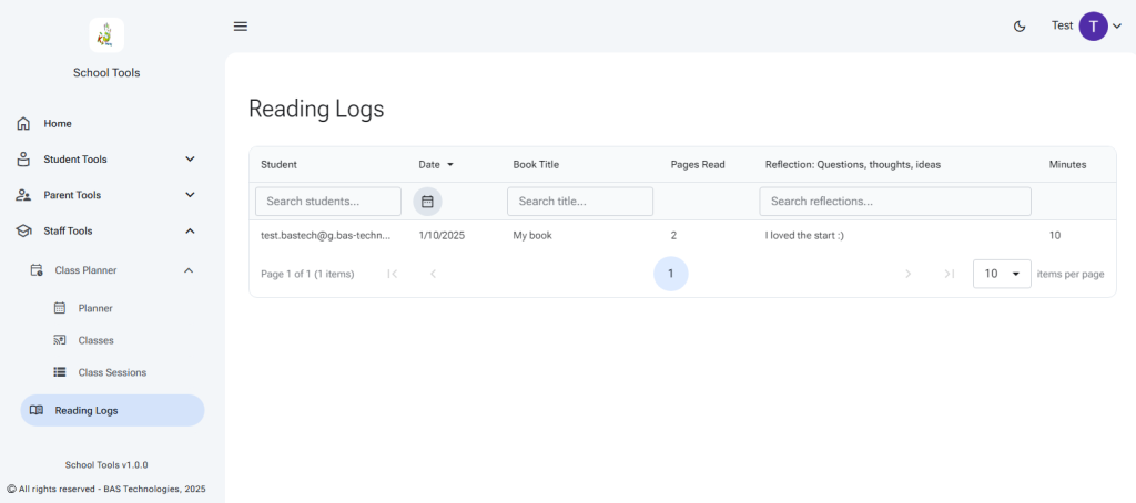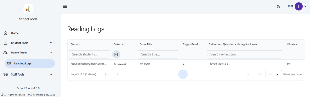 Let the viewer know that you have shared the reading log. They can view the log from the Parent Tools or Staff Tools menus.
