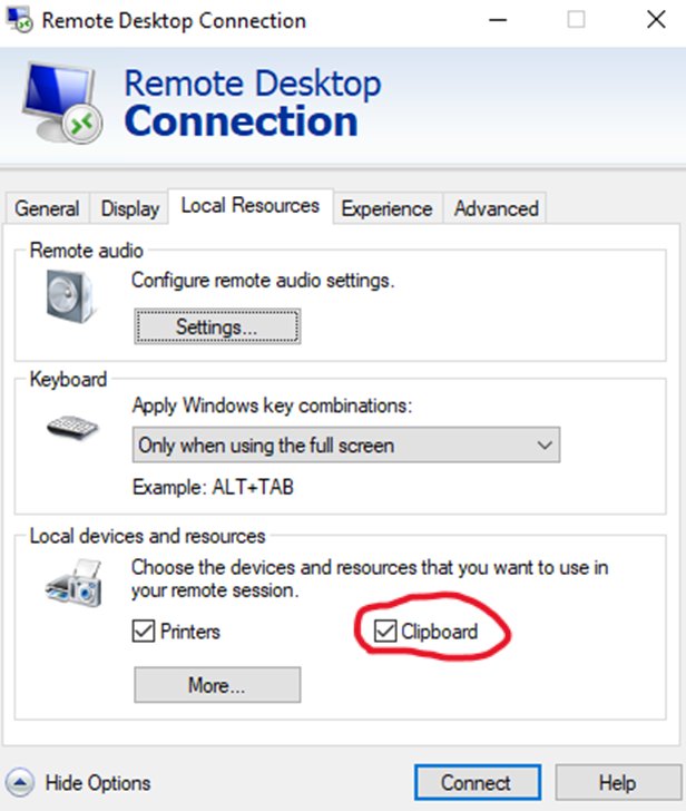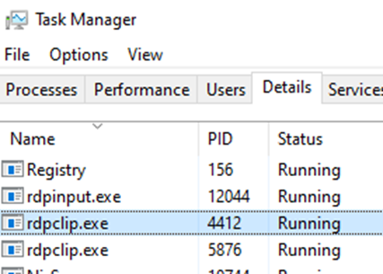 Check that the clipboard is enabled in the Local Resources tab for the RDP connection.